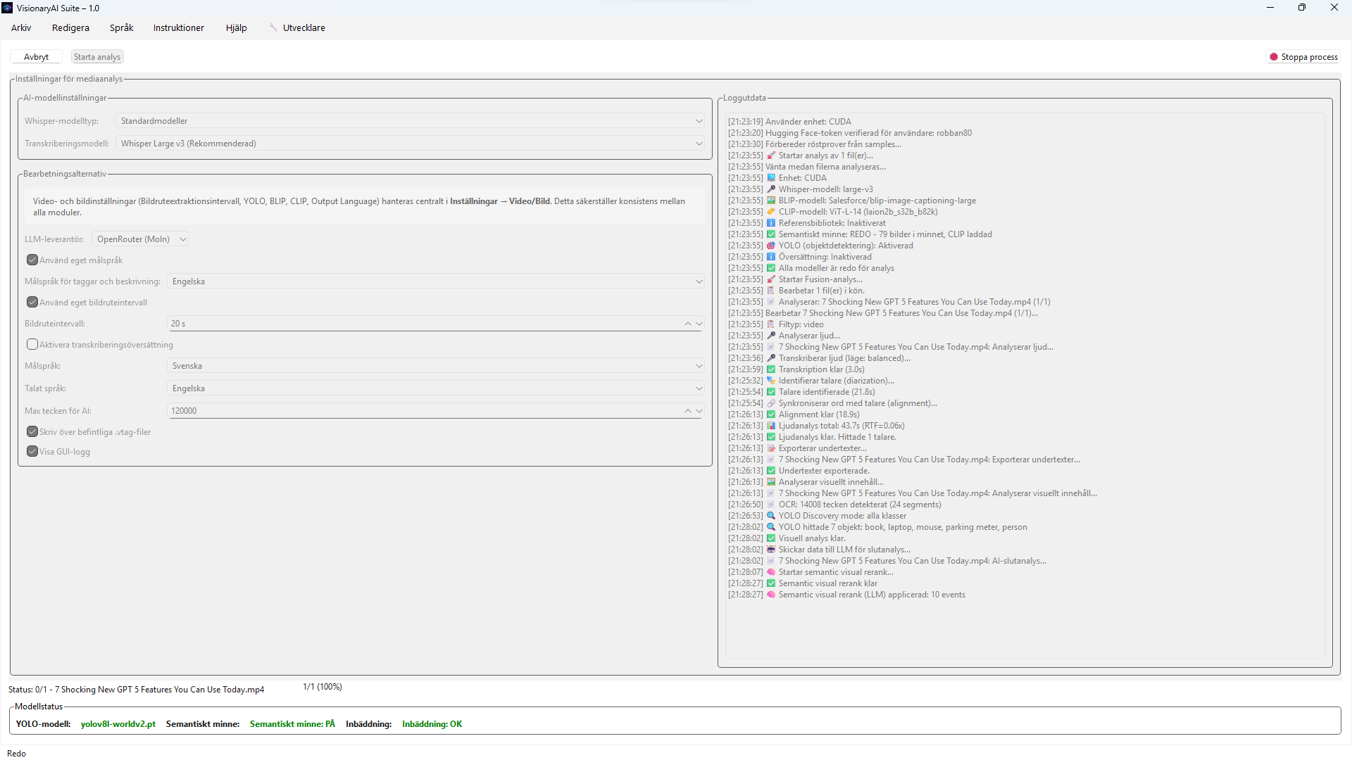 I stället för att media bara ligger som “filer i mappar” gör VisionaryAI Suite mediet till något som går att söka i, filtrera, sammanfatta, dokumentera och exportera, med hög nivå av kontroll.