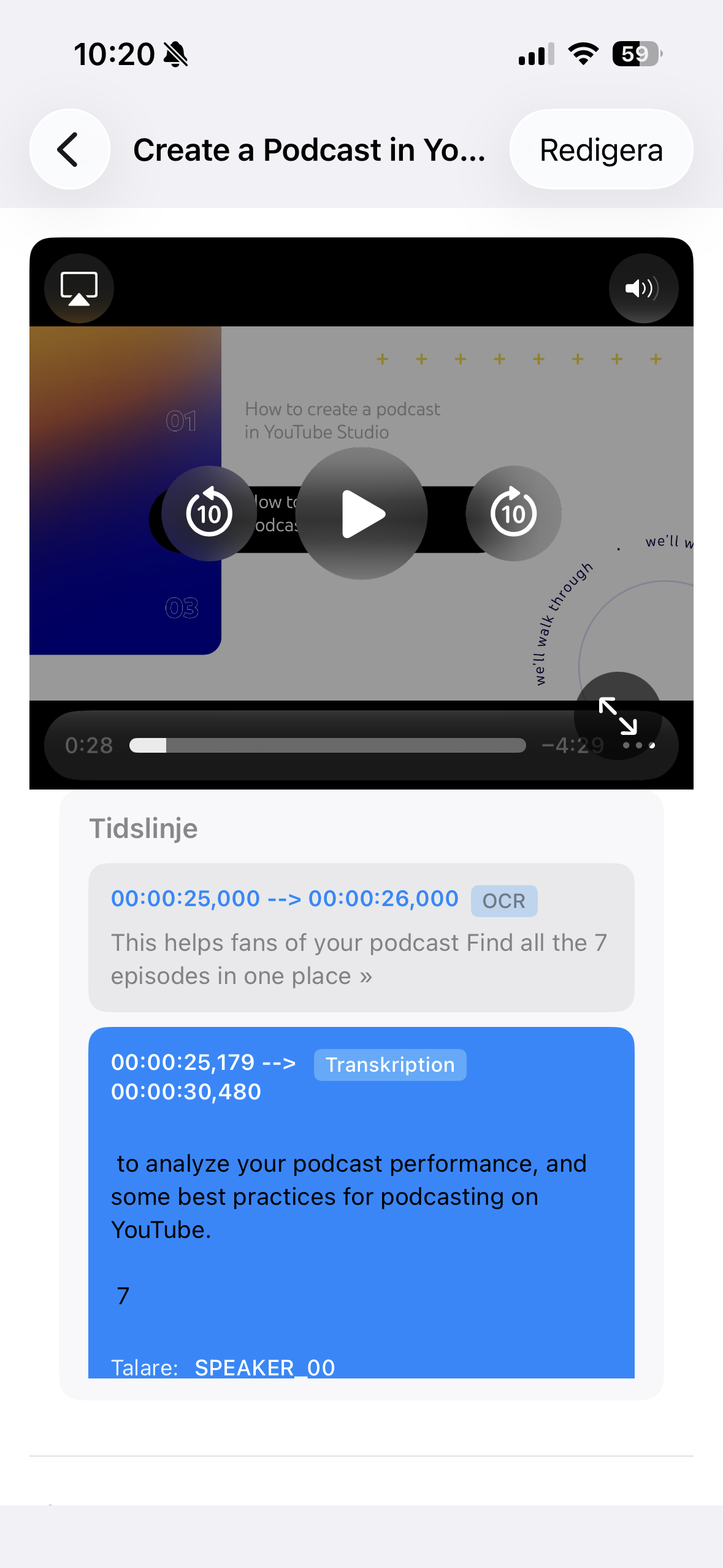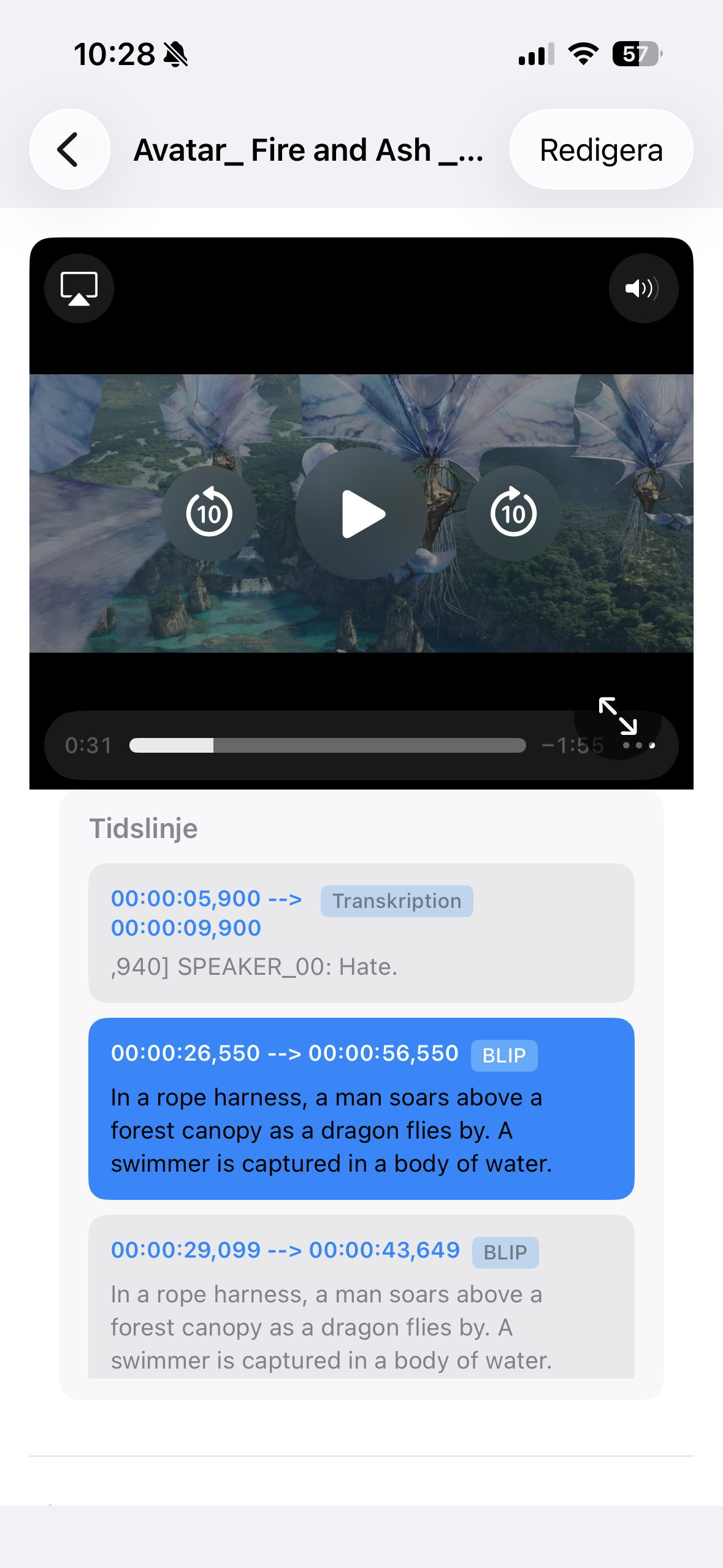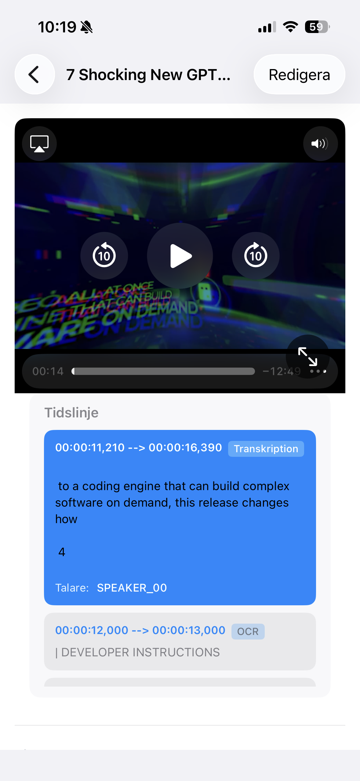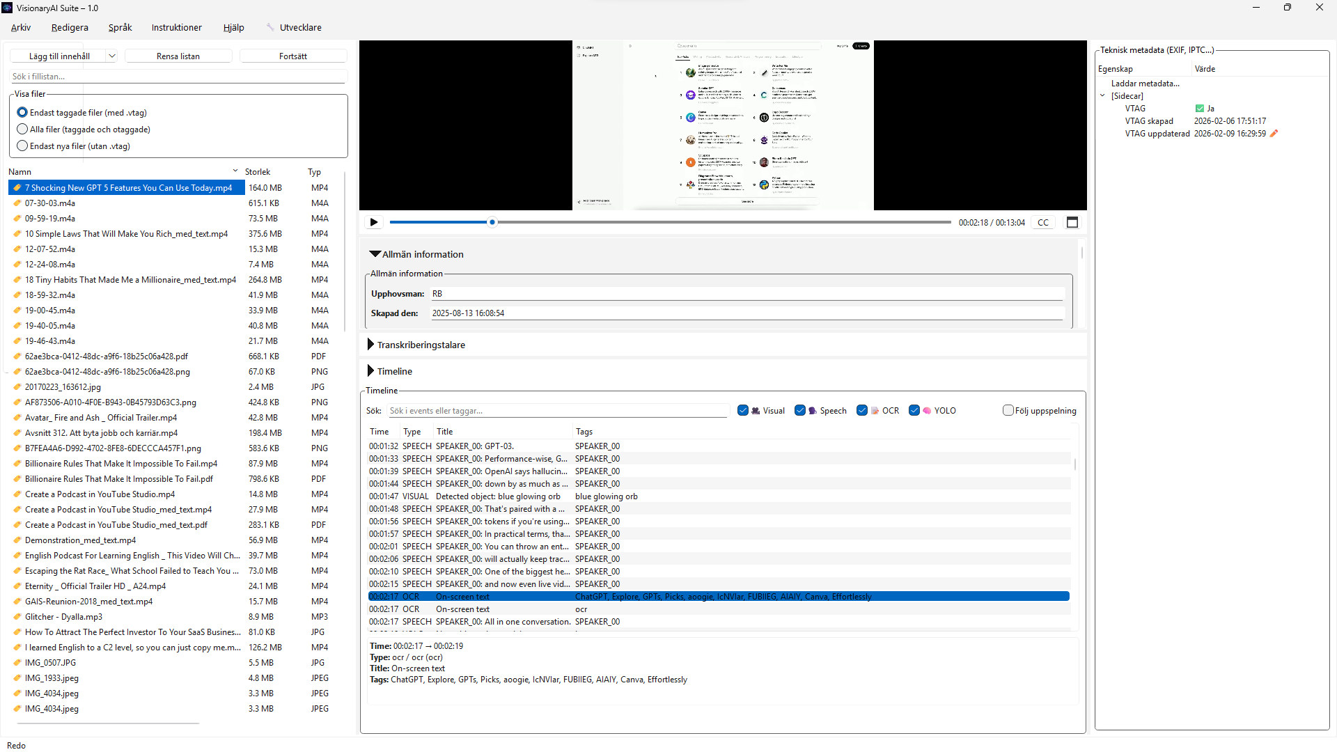 Jump straight to the exact second that matters with timestamped AI events. Transcription, speakers, OCR and visual observations are organized into a structured timeline you can search, filter and navigate in seconds.